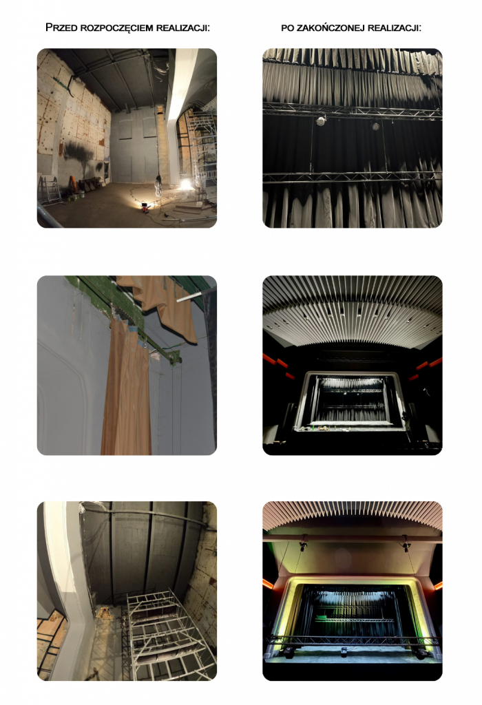 Światła, kamera, akcja! Znajdujemy się na scenie Brzozowskiego Domu Kultury, którą totalnie zrewolucjonizowaliśmy. Poniżej prezentujemy wykaz prac, które odmieniły losy tego miejsca i stworzyły przestrzeń artystyczną dla przyszłych gwiazd największego formatu.